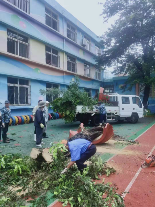 我校后勤集团启动防台防洪应急预案进入第二天,