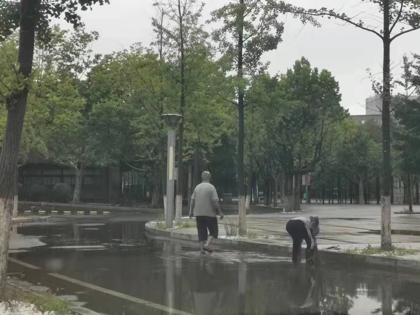 疏通路面积水,恢复校园环境