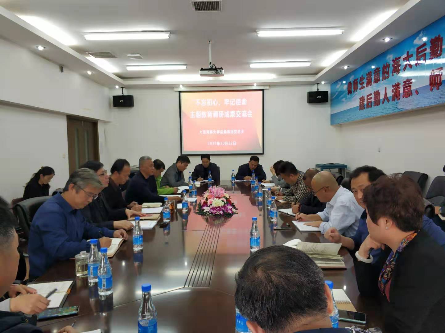 为扎实有效推进开展“不忘初心、牢记使命”主题教育,根据《中共大连海事大学委员会关于开展“不忘初心、牢记使命”主题教育的实施方案》及学校党委的主题教育计划安排,10月22日,后勤服务(集团)公司党总支在文勤楼二楼会议室召开“不忘初心、牢记使命”主题教育调研成果交流会。学校第三指导组组长关晓光一行三人到会指导,集团领导班子成员、各中心(部门)负责人及各党支部书记参加会议。会议由集团党总支书记由学海主持。