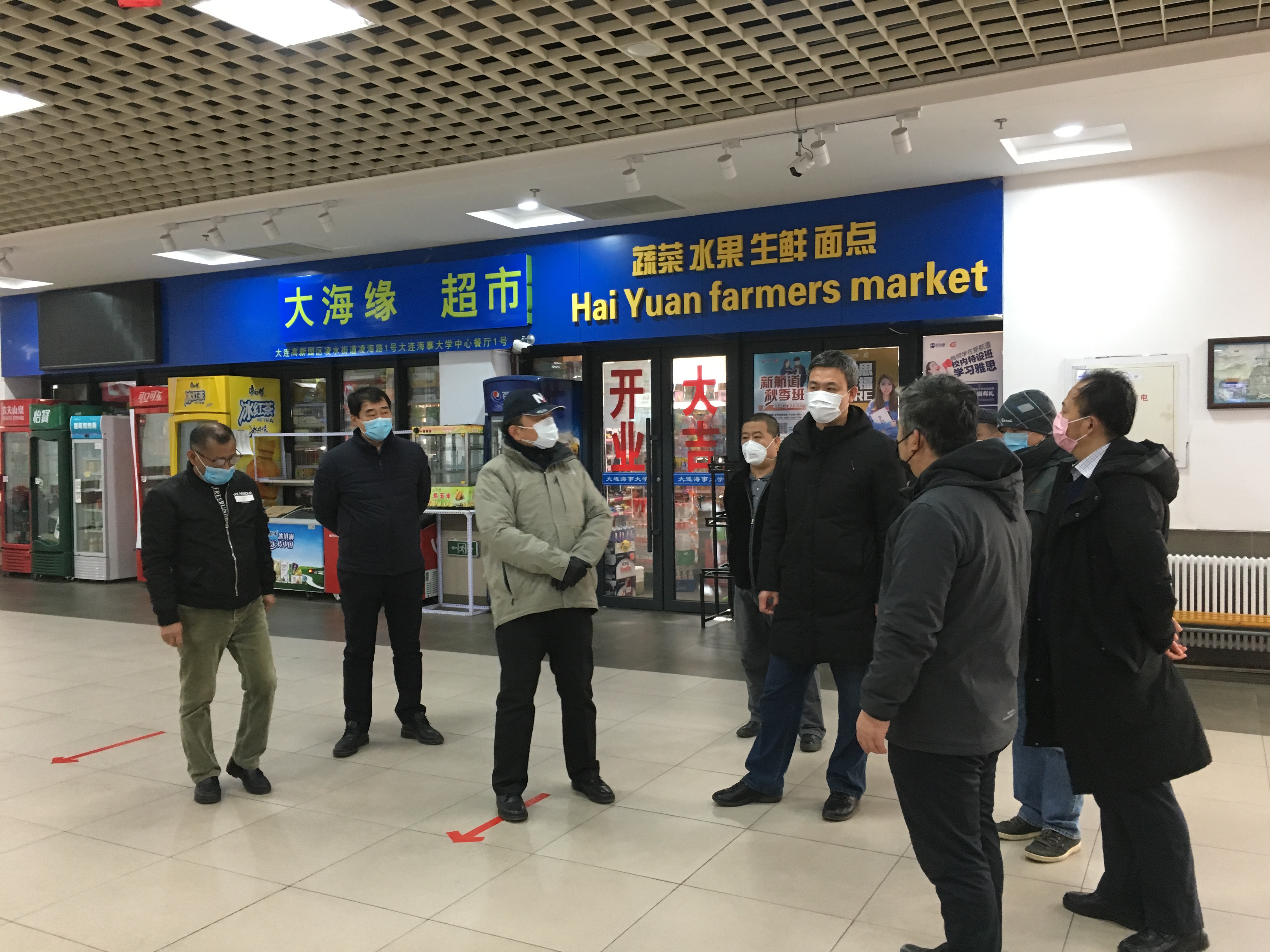 在中心食堂,校领导检查了食堂窗口、超市以及工作人员操作区域的卫生和运转情况,详细了解了学校开学后教职工供餐保障有关事宜。孙玉清充分肯定了后勤及食堂开展的相关防控举措,他强调,食品安全关系重大,特别是在疫情期间,要严格落实各项防疫举措,切实维护好师生安全健康。他还要求,一是要严格食堂人员管理,加强健康排查和个人卫生管理,增加洗手和消毒频次,凡有疫情症状征兆,应立即启动应急预案;二是要确保食堂清洁卫生,要每天对操作间、人员通道、更衣间以及洗手间等工作区域进行消毒清洁,非食堂人员不得进入后厨,废弃口罩、餐厨垃圾等及时妥善处理;三是要规范食堂餐食供应,开学后一段时期内,供餐方式主要以盒饭供应为主,每天发放给各部门、单位的食品程序,要严格按照既定安排执行,不得出现特事特例。