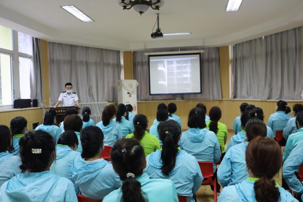 马教官就近期大连发生的几起火灾和燃气爆炸事故以及车辆火灾、电火、油锅起火等进行消防知识宣传,纠正了一些消防误区,提高了教师的消防安全意识。马教官还就消防器材的使用及女教师如何“防狼”进行了详细的讲解。教职工们在讲座中积极与教官进行互动,不仅学到了有用的基础防火知识,更重要的是进一步增强了大家的消防法治观念和消防安全意识,提高了员工自防自救的安全意识,“人人讲安全、事事讲安全、时时讲安全”的意识深入人心。