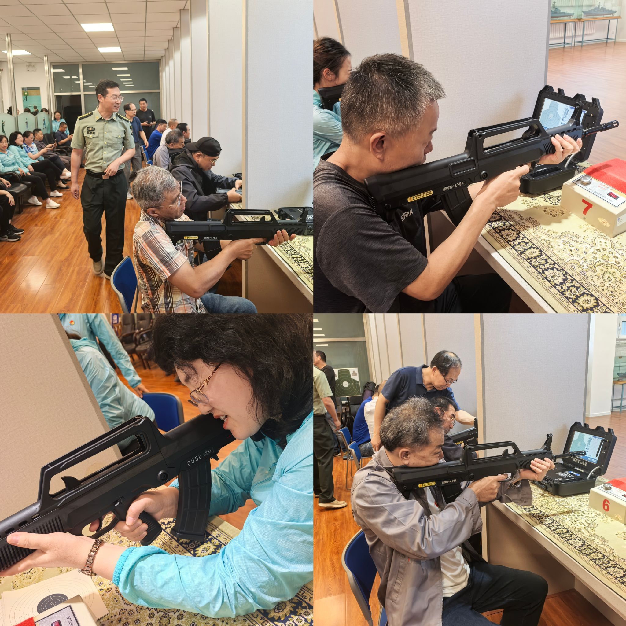 随后,参与活动的党员在专业教师的指导下,手持激光模拟枪,进行了紧张严肃的射击体验。通过模拟射击,大家不仅感受到了军事训练的严谨与乐趣,更在实战演练中锻炼了意志品质,提升了应急反应能力。