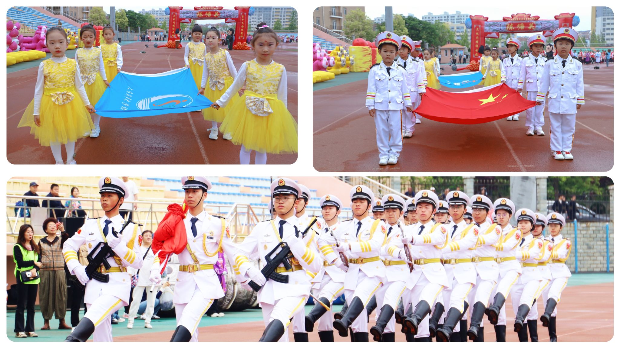 随后,家长代表和小运动员代表分别发言,表达了对活动的期待和喜悦之情。在庄严的升国旗仪式上,校国旗护卫队队员们英姿飒爽,与身着“小哪吒”服饰的萌娃们共同见证五星红旗冉冉升起,构成了一幅动人的画面。