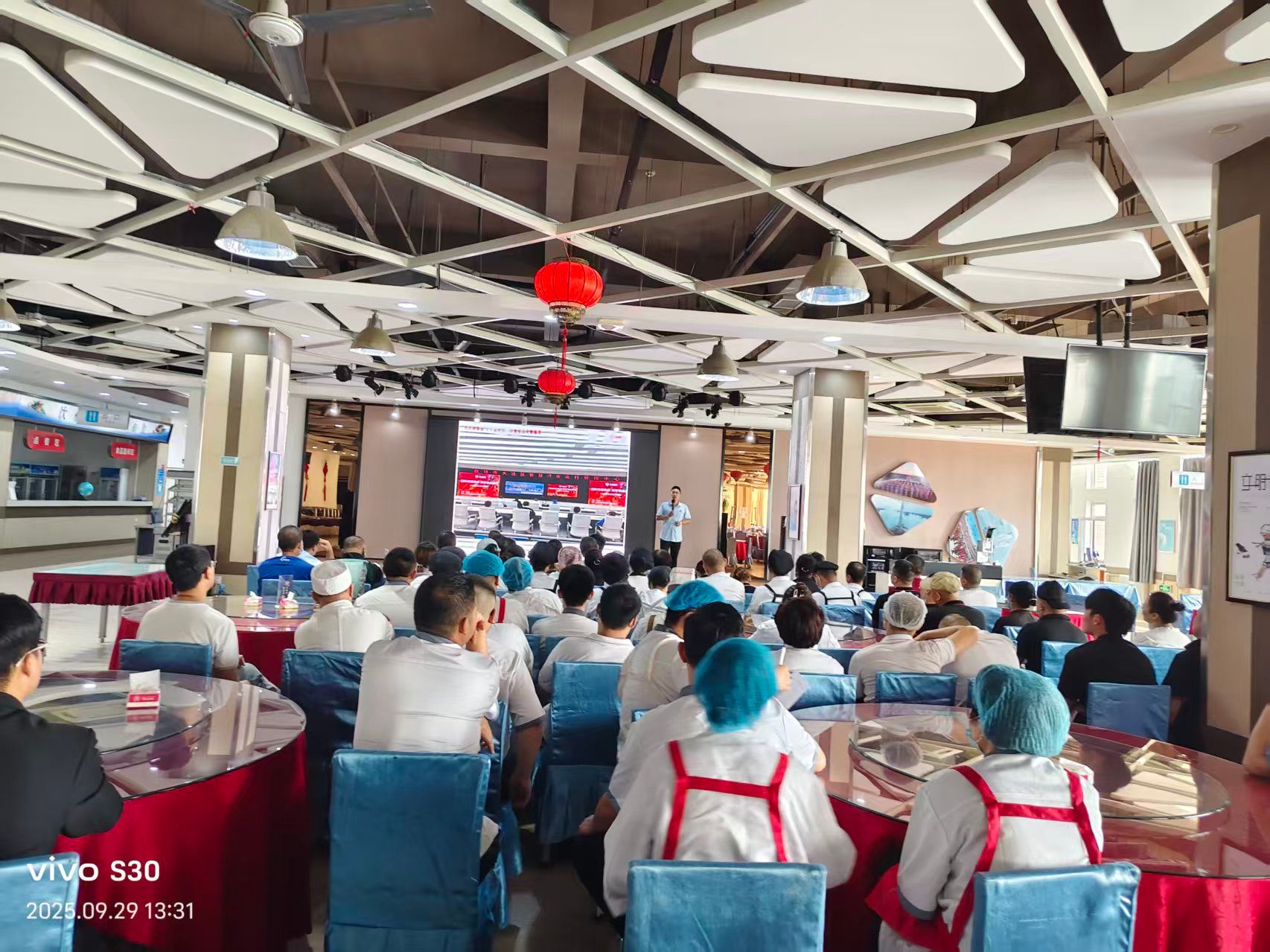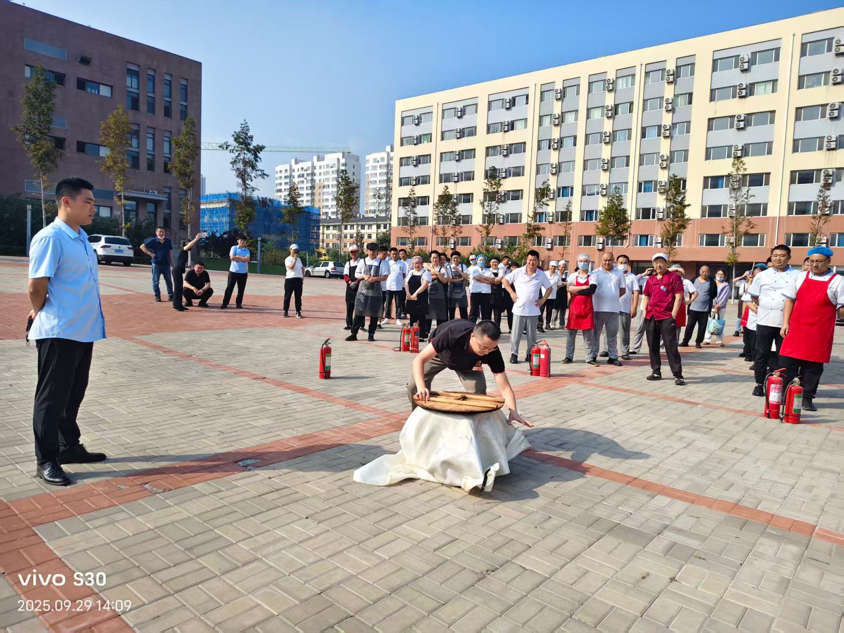 为增强饮食服务中心各食堂员工的消防安全意识,切实筑牢安全生产防线,9月29日下午,饮食服务中心联合公建管理服务中心在中心食堂举办了消防安全专题培训及油锅灭火专项演练,共111名过油岗位员工参加。