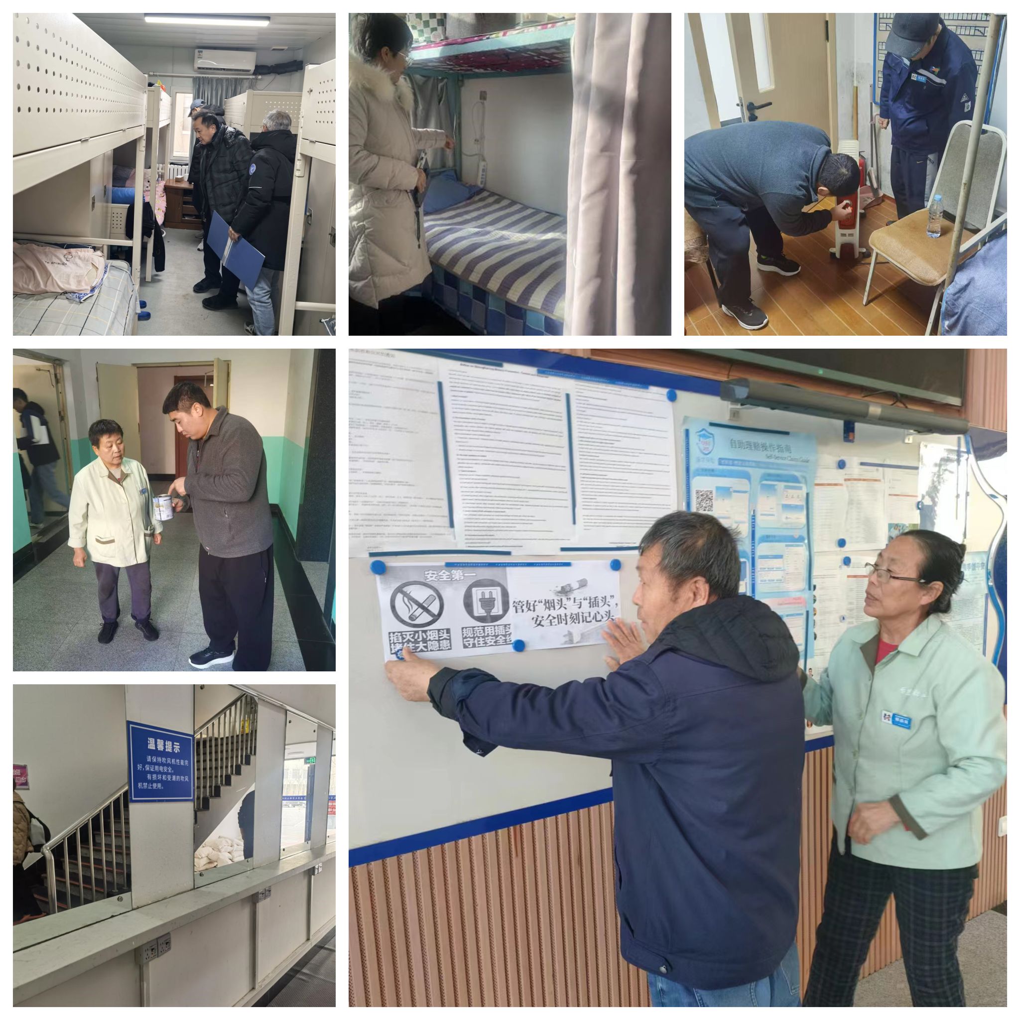 集团各中心高度重视,迅速成立专项检查小组,明确责任分工,建立并严格执行“专人负责、分区排查、拍照留痕、闭环整改”的工作机制。检查范围覆盖学生公寓、教学办公楼宇公共区域、员工宿舍与休息区、浴池商超等各类服务场所,坚持“边查边改、立行立改”原则,确保问题及时发现并迅速处置。